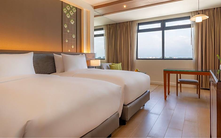 The spacious suite has 1 bedroom and 1 bathroom with a bath and free toiletries. This suite is air-conditioned and features a seating area with a flat-screen TV, a mini-bar, a coffee machine, a wardrobe, as well as a safe deposit box. The unit has 2 beds.