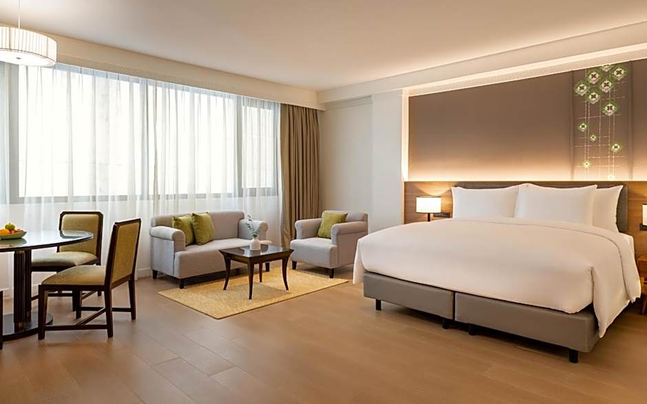 Offering a large living room with a sofa set, this spacious suite has a separate working desk. Decorated in warm tone, this air-conditioned accommodations is carpeted. An private bathroom comes with a bathtub, a shower and free toiletries. A hairdryer, a bathrobe and slippers are offered.