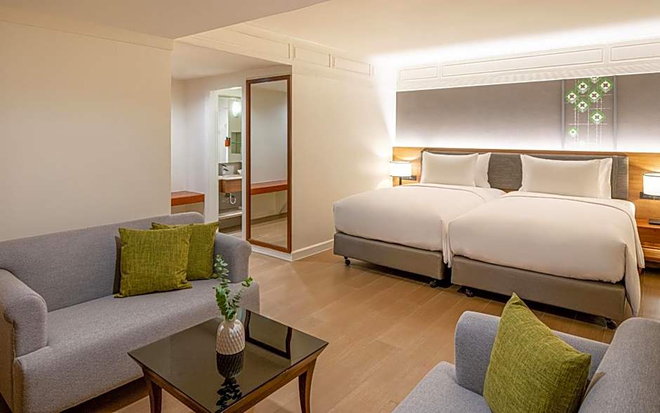 The spacious suite has 1 bedroom and 1 bathroom with a bath and free toiletries. This suite is air-conditioned and features a seating area with a flat-screen TV, a mini-bar, a coffee machine, a wardrobe, as well as a safe deposit box. The unit has 2 beds.
